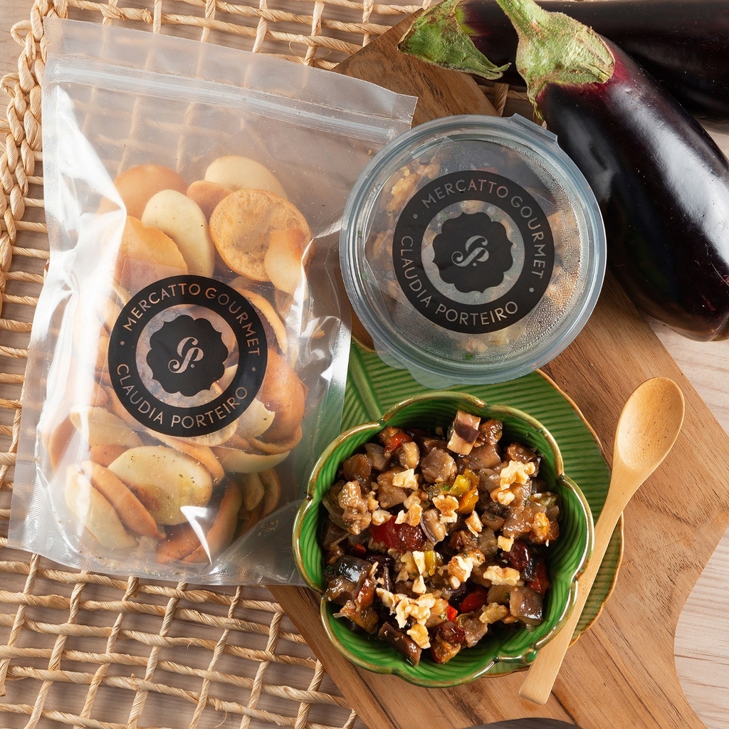 Nossa caponata de berinjela é uma combinação irresistível de sabores que vai conquistar seu paladar! Composta por berinjelas frescas, pimentões, nozes e temperos especiais, ela é perfeita para ser servida como uma entrada deliciosa.